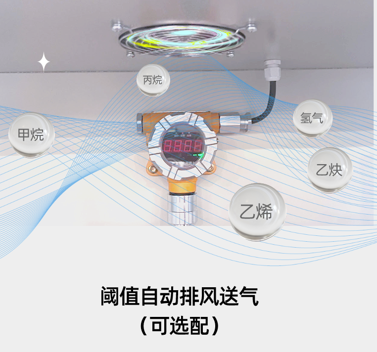 采用防爆型气体检测器,可识别大多数可燃气体,具有防爆认证