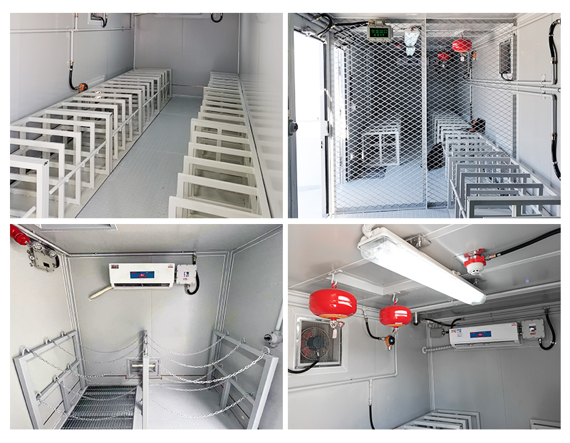 采用防火、防爆、防腐等特殊材料设计,确保气瓶在存储过程中的安全。 内部设有专门的气瓶支架和固定装置,防止气瓶滚动或倾倒。