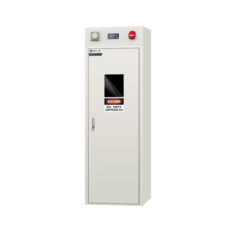 - 柜内配有气瓶抱箍,防止气瓶倾倒,柜门采用 5mm 厚平板玻璃;