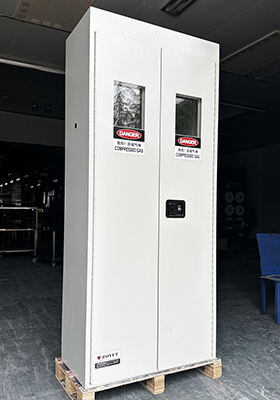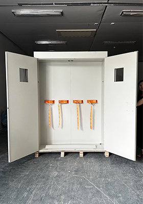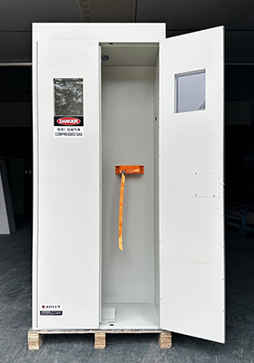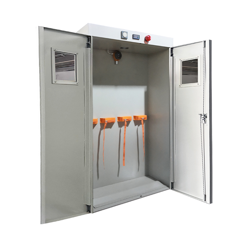 - 柜内配有气瓶抱箍,防止气瓶倾倒,柜门采用 5mm 厚平板玻璃;