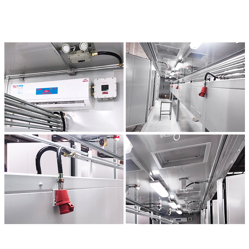 1. 采用高强度防火材料构建,具备优异的耐高温、阻燃性能,有效隔绝电池充电过程中可能产生的热量与火花,防止火灾事故。内置智能温控系统,实时监测并调节充电间内部温度,确保电池充电安全无忧;