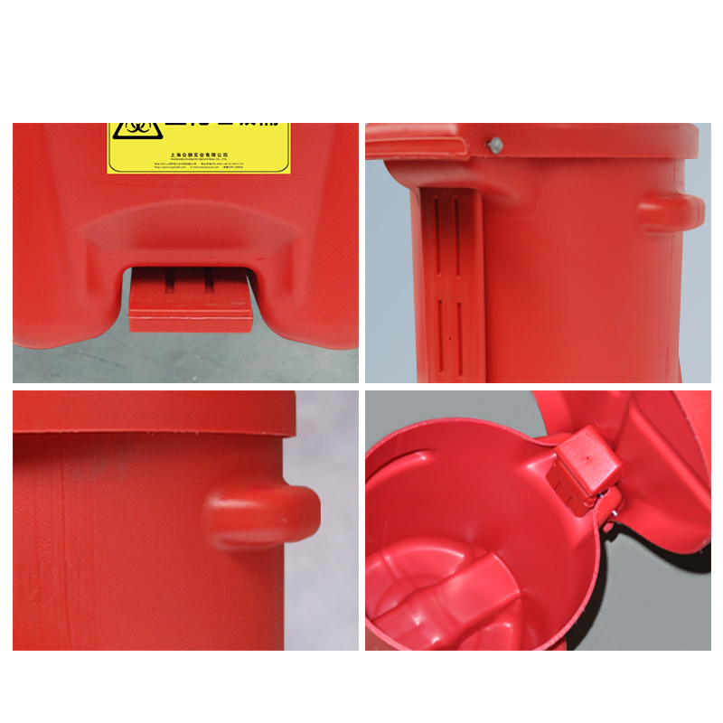 众御生化垃圾桶适用于大多数危化品固体废弃物、溶剂及废弃擦拭物、碎片等材料短暂放置,防止自燃,可独立或搭配防化处理袋使用。