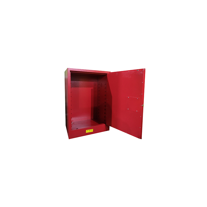 - 易燃液体安全柜由双层1.2mm钢板通过点焊接构造,整体为双层防火钢板结构,两层钢板之间有 38mm 的防火层,有效防火绝缘;